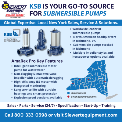 Siewert Equipment is proud to supply KSB pump solutions throughout New York, delivering reliable dry-pit and wet-pit submersible pumping systems engineered for long service life, efficiency, and dependable operation in demanding environments.